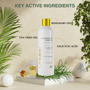 The shampoo is infused with a combination of scientifically-backed, active ingredients—Salicylic Acid, Tea Tree Oil, and Rosemary Oil—each known for its effectiveness in treating dandruff and seborrheic dermatitis.